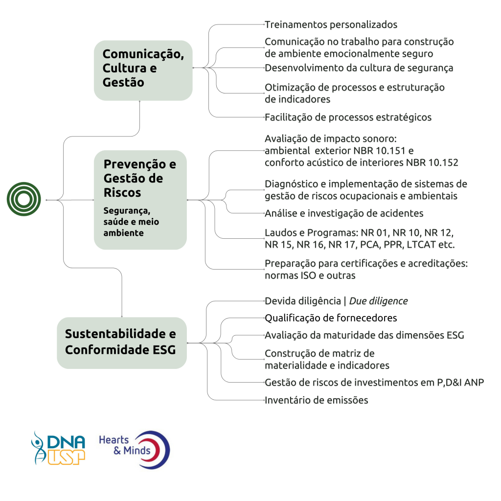 - Diagnóstico e implementação de sistemas de gestão de riscos ocupacionais e ambientais